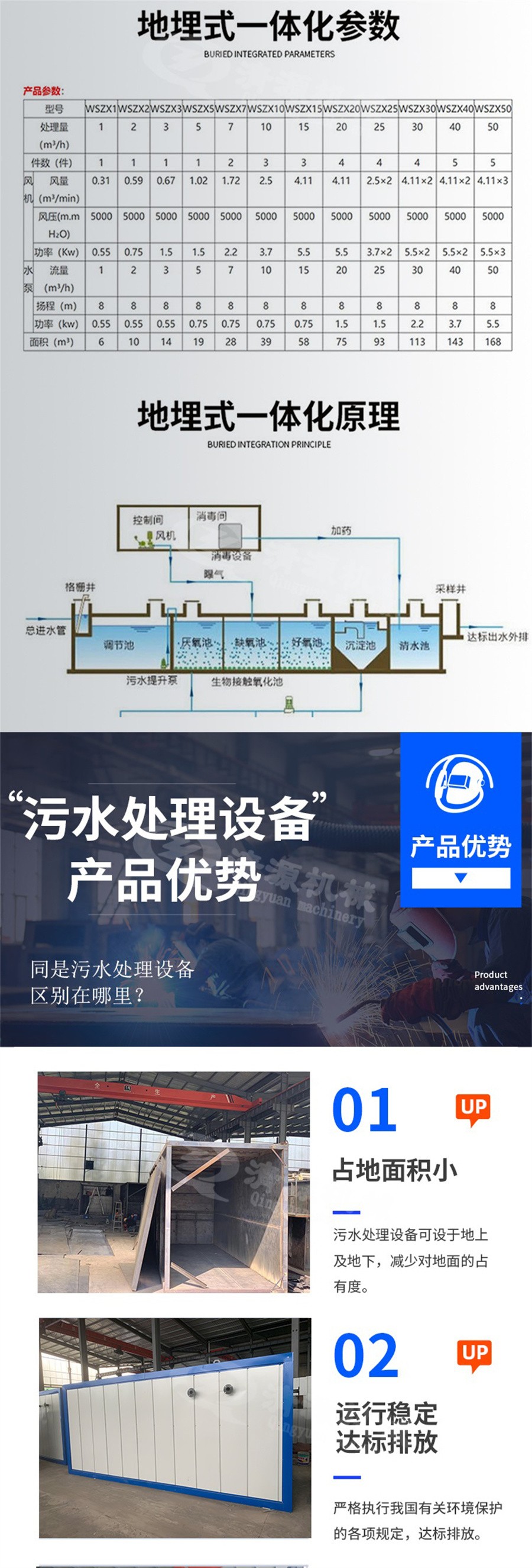 能夠處理生活系統綜合性廢水及其相類似的有機污水;采用玻璃鋼、不銹鋼結構,具有耐腐蝕、抗老化等優良特性,使用壽命長達 50 年以上 全套裝置施工簡單、操作容易,所有機械設備均為自動化控制,全部裝置可設置于地表以下,占地面積小。