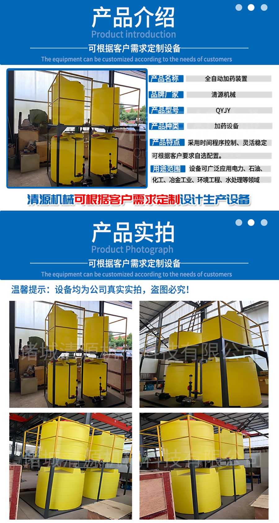 二、全自動加藥設備應用范圍:電力、石油、化工、冶金工業、環境工程、水處理等領域