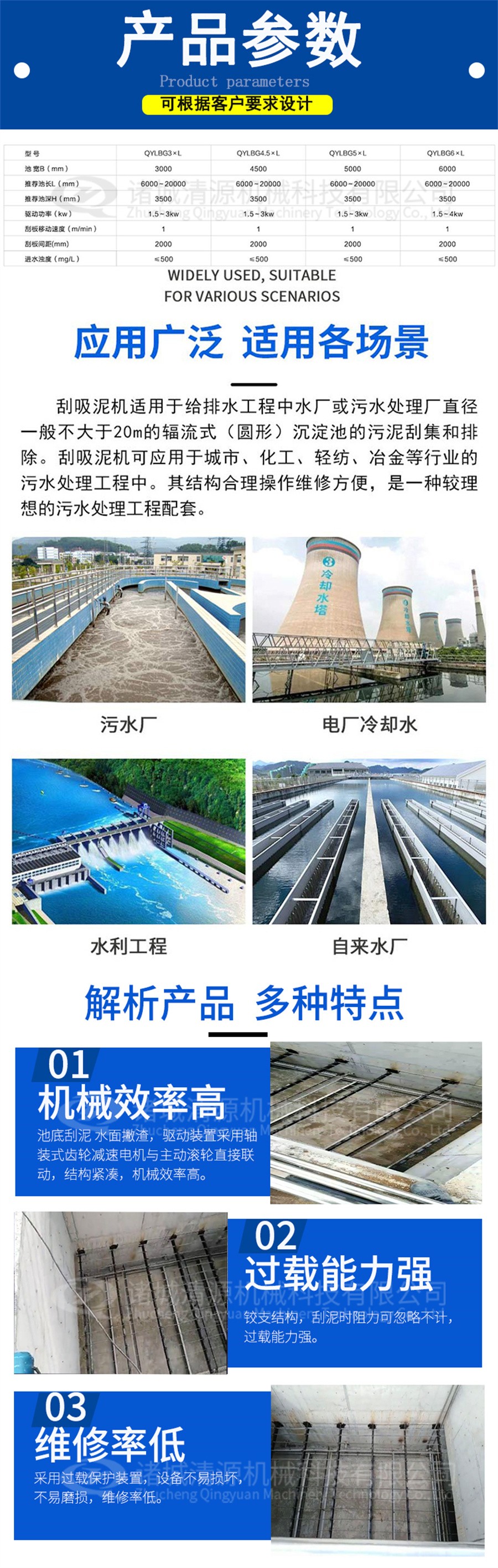 我公司除生產鏈板式刮油刮泥機外,還生產:行車提耙刮泥機,全橋式周邊傳動刮吸泥機,污泥濃縮機,污泥脫水一體化等其他污泥濃縮設備。