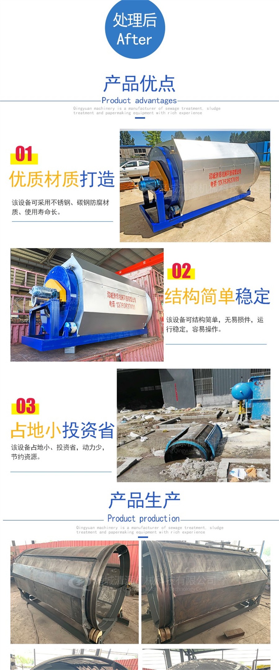 占地面積小、設備質量高,出水達標排放,維護方便,全自動化控制,固液分離效果好,節省人工費,應用范圍廣泛。